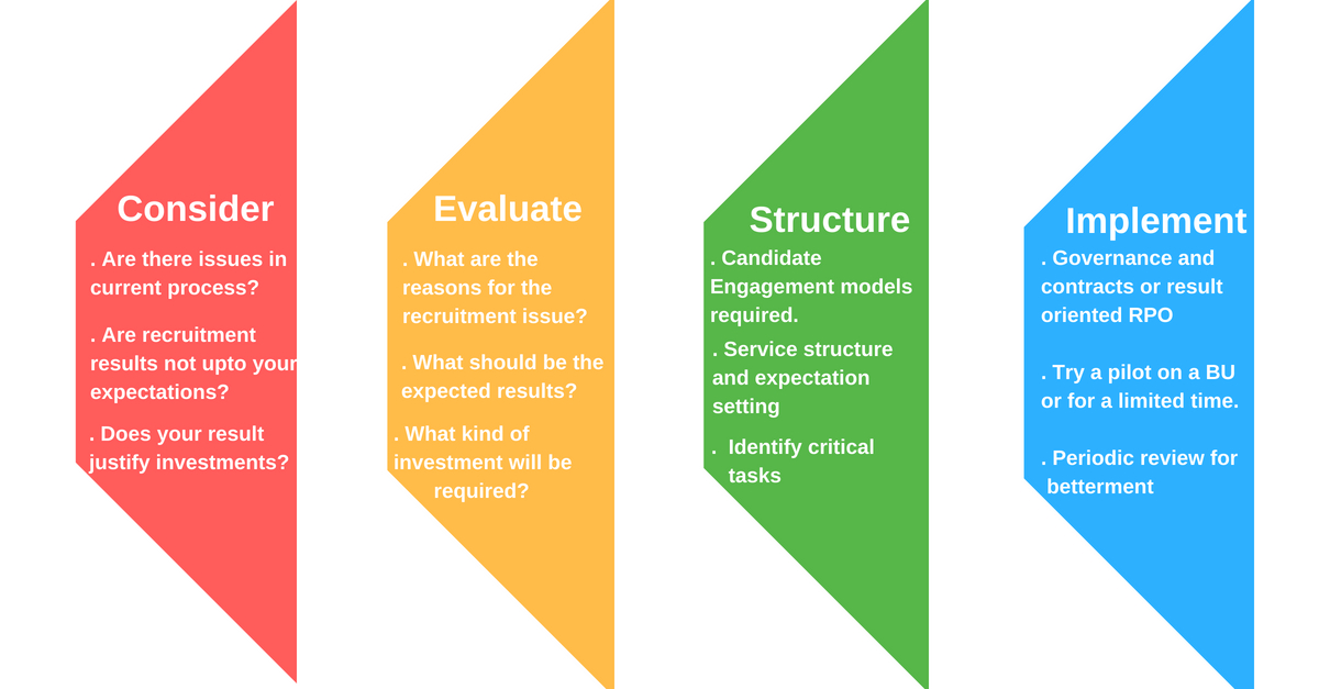 To manage and deliver customized RPO service towards individual clients, Biz Staffing follows a diagnosis led approach. The four steps outlined below help clients know what they want and enable them in recognizing RPO as a solution for a specific problem.